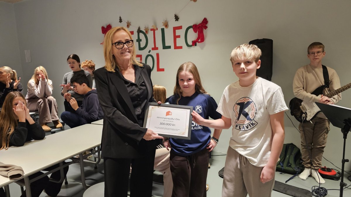 Á þemadögunum í lok nóvember bjuggu nemendur til ýmsan varning sem var seldur á föstudeginum. Markmiðið var að safna fjármunum til að styrkja góð málefni og völdu nemendur að styrkja tvö málefni. Í heildina safnaðist tæplega 400.000 kr og ákveðið var að styrkja Hróa hött um 100.000 kr og Minningarsjóð Ölla um 300.000 kr. Fulltrúar nemenda, þau Eiður Emil Einarsson og Helga Þorgilsdóttir, afhentu Margréti Sanders, sem kom fyrir hönd Minningarsjóðs Ölla, styrkinn í dag. Það er okkar von að þessi fjárhæð nýtist þeim börnum sem þess þurfa og þökkum við foreldrum og forráðamönnum skólans að taka vel í styrktarsöfnunina sem gerði nemendum kleift að styrkja þessi málefni.